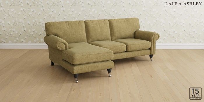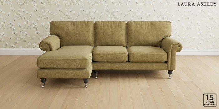 6.12.1 Buy Kingston by Laura Ashley Medium Sofa Chaise - Left Hand Orla Gold Natural Low Brass Castor - Black from the Laura Ashley online shop Click here to use our website with more accessibility support, for example screen readers