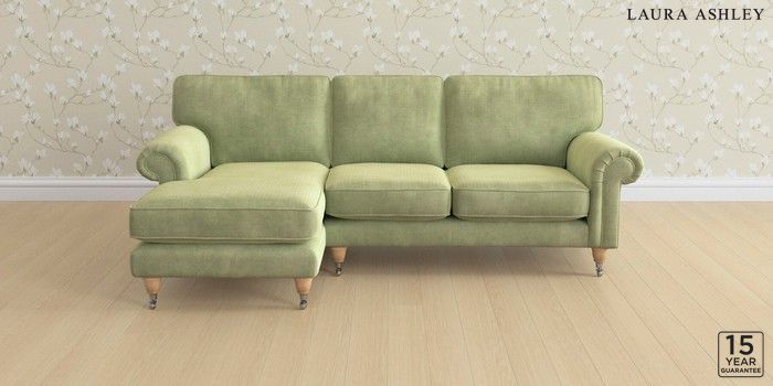 6.12.1 Buy Kingston by Laura Ashley Medium Sofa Chaise - Left Hand Orla Pale Hedgerow Green Low Chrome Castor - Light Oak from the Laura Ashley online shop Click here to use our website with more accessibility support, for example screen readers