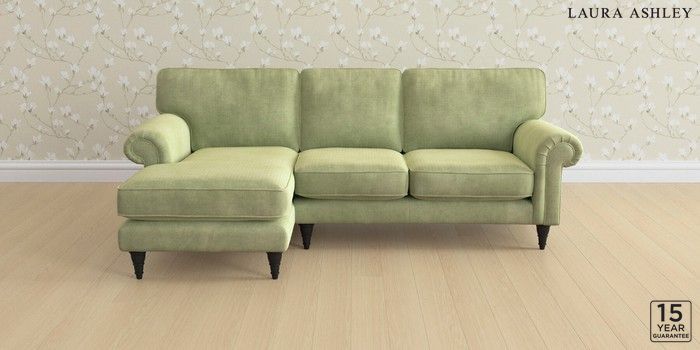 6.12.1 Buy Kingston by Laura Ashley Medium Sofa Chaise - Left Hand Orla Pale Hedgerow Green Low Turned - Black from the Laura Ashley online shop Click here to use our website with more accessibility support, for example screen readers