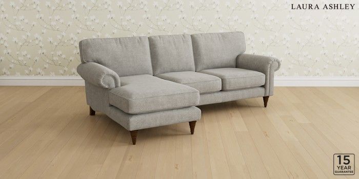 6.12.1 Buy Kingston by Laura Ashley Medium Sofa Chaise - Left Hand Orla Pale Steel Grey Low Turned - Teak from the Laura Ashley online shop Click here to use our website with more accessibility support, for example screen readers