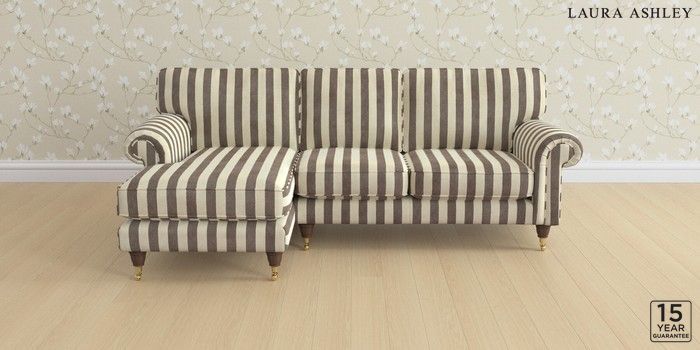 6.12.1 Buy Kingston by Laura Ashley Medium Sofa Chaise - Left Hand Orla Stripe Dark Truffle Natural Low Brass Castor - Chestnut from the Laura Ashley online shop Click here to use our website with more accessibility support, for example screen readers