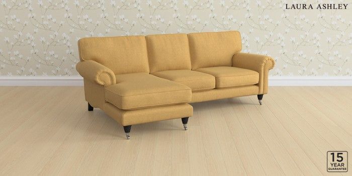 6.12.1 Buy Kingston by Laura Ashley Medium Sofa Chaise - Left Hand Peyton Ochre Yellow Low Chrome Castor - Black from the Laura Ashley online shop Click here to use our website with more accessibility support, for example screen readers
