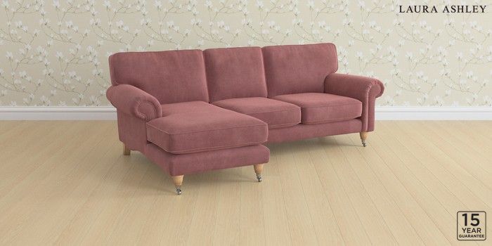 6.12.1 Buy Kingston by Laura Ashley Medium Sofa Chaise - Left Hand Peyton Plum Purple Low Chrome Castor - Light Oak from the Laura Ashley online shop Click here to use our website with more accessibility support, for example screen readers