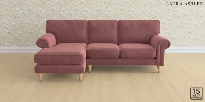 6.12.1 Buy Kingston by Laura Ashley Medium Sofa Chaise - Left Hand Peyton Plum Purple Low Turned - Light Oak from the Laura Ashley online shop Click here to use our website with more accessibility support, for example screen readers