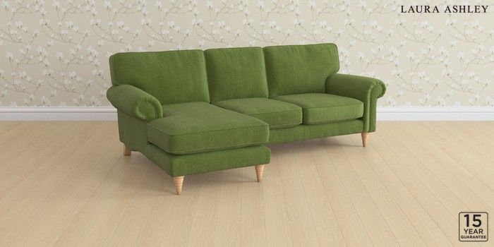6.12.1 Buy Kingston by Laura Ashley Medium Sofa Chaise - Left Hand Tichwell Olive Green Low Turned - Light Oak from the Laura Ashley online shop Click here to use our website with more accessibility support, for example screen readers