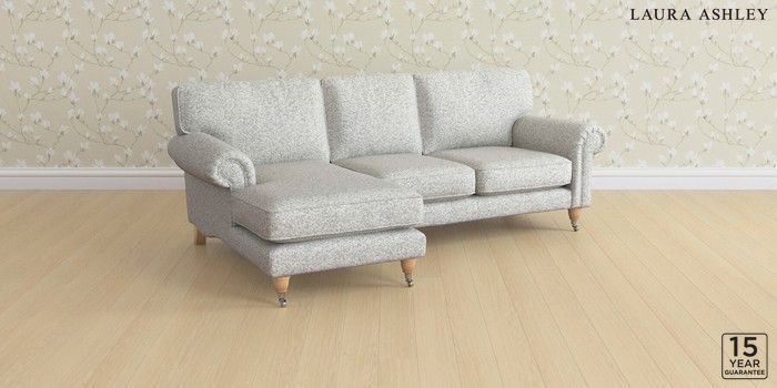 6.12.1 Buy Kingston by Laura Ashley Medium Sofa Chaise - Left Hand Tichwell Steel Grey Low Chrome Castor - Light Oak from the Laura Ashley online shop Click here to use our website with more accessibility support, for example screen readers