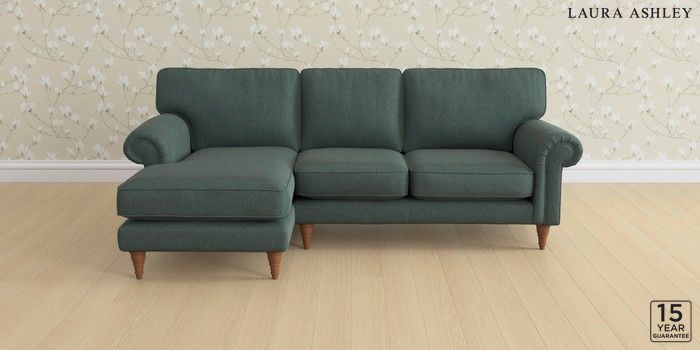 6.12.1 Buy Kingston by Laura Ashley Medium Sofa Chaise - Left Hand Wooton Forest Green Low Turned - Teak from the Laura Ashley online shop Click here to use our website with more accessibility support, for example screen readers
