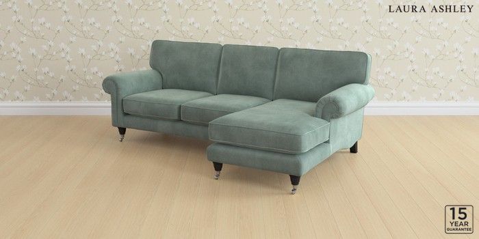 6.12.1 Buy Kingston by Laura Ashley Medium Sofa Chaise - Right Hand Ailsworth Fern Green Low Chrome Castor - Black from the Laura Ashley online shop Click here to use our website with more accessibility support, for example screen readers