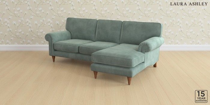 6.12.1 Buy Kingston by Laura Ashley Medium Sofa Chaise - Right Hand Ailsworth Fern Green Low Turned - Teak from the Laura Ashley online shop Click here to use our website with more accessibility support, for example screen readers