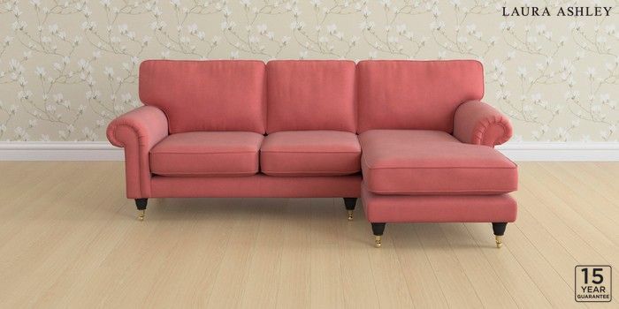 6.12.1 Buy Kingston by Laura Ashley Medium Sofa Chaise - Right Hand Ailsworth Old Rose Pink Low Brass Castor - Black from the Laura Ashley online shop Click here to use our website with more accessibility support, for example screen readers