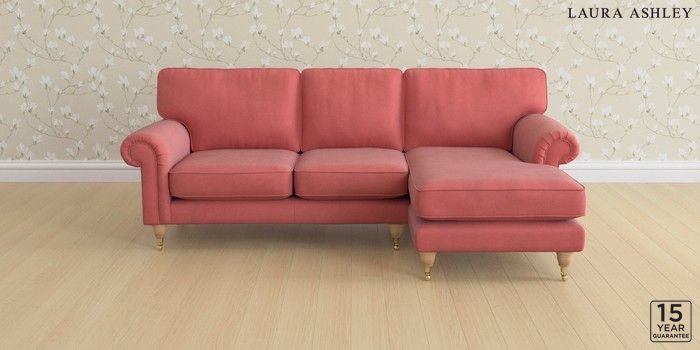 6.12.1 Buy Kingston by Laura Ashley Medium Sofa Chaise - Right Hand Ailsworth Old Rose Pink Low Brass Castor - Light Oak from the Laura Ashley online shop Click here to use our website with more accessibility support, for example screen readers