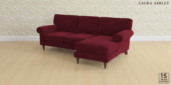 6.12.13 Buy Kingston by Laura Ashley Medium Sofa Chaise - Right Hand Alwyn Velvet Burgundy Red Low Turned - Chestnut from the Laura Ashley online shop Click here to use our website with more accessibility support, for example screen readers