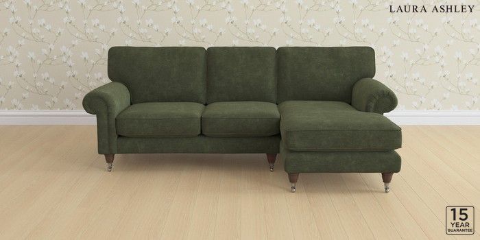 6.12.1 Buy Kingston by Laura Ashley Medium Sofa Chaise - Right Hand Alwyn Velvet Ivy Green Low Chrome Castor - Chestnut from the Laura Ashley online shop Click here to use our website with more accessibility support, for example screen readers