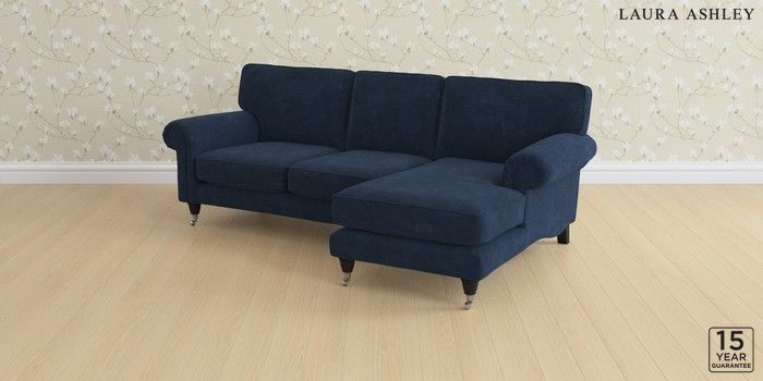 6.12.13 Buy Kingston by Laura Ashley Medium Sofa Chaise - Right Hand Alwyn Velvet Midnight Navy Low Chrome Castor - Black from the Laura Ashley online shop Click here to use our website with more accessibility support, for example screen readers