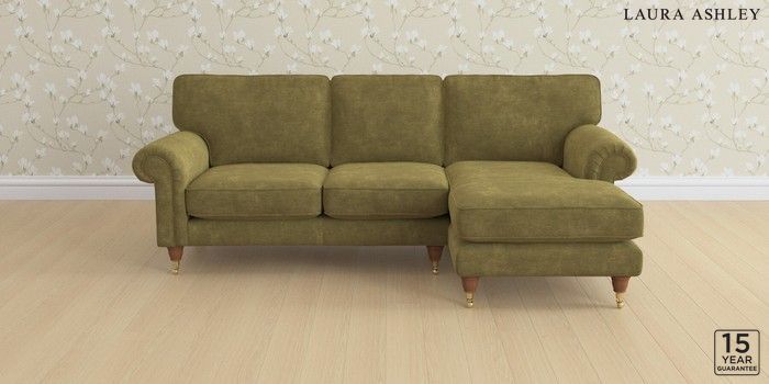 6.12.1 Buy Kingston by Laura Ashley Medium Sofa Chaise - Right Hand Alwyn Velvet Olive Green Low Brass Castor - Teak from the Laura Ashley online shop Click here to use our website with more accessibility support, for example screen readers