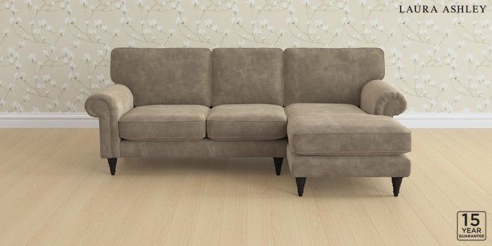 6.12.1 Buy Kingston by Laura Ashley Medium Sofa Chaise - Right Hand Alwyn Velvet Truffle Natural Low Turned - Black from the Laura Ashley online shop Click here to use our website with more accessibility support, for example screen readers