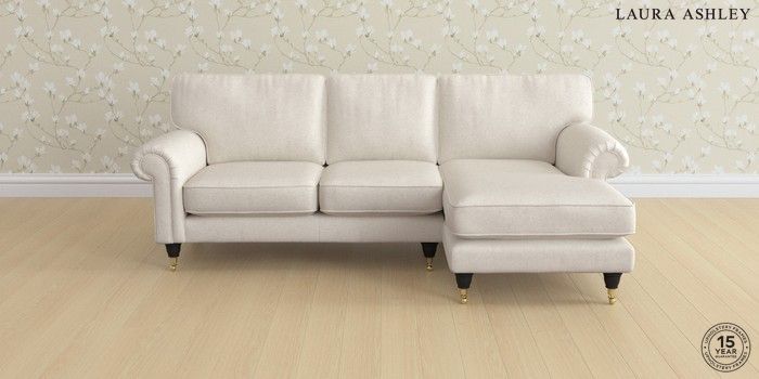 7.2.6 Buy Kingston by Laura Ashley Medium Sofa Chaise - Right Hand Anneliese Oyster Natural Low Brass Castor - Black from the Laura Ashley online shop Click here to use our website with more accessibility support, for example screen readers