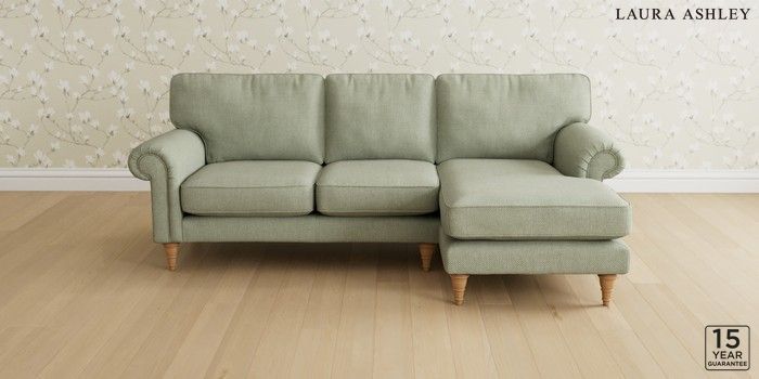 6.12.13 Buy Kingston by Laura Ashley Medium Sofa Chaise - Right Hand Anneliese Sage Green Low Turned - Light Oak from the Laura Ashley online shop Click here to use our website with more accessibility support, for example screen readers