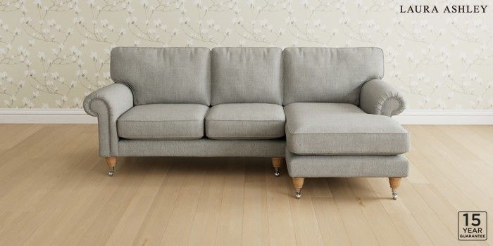 6.12.1 Buy Kingston by Laura Ashley Medium Sofa Chaise - Right Hand Anneliese Steel Grey Low Brass Castor - Light Oak from the Laura Ashley online shop Click here to use our website with more accessibility support, for example screen readers