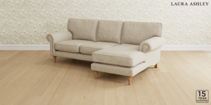 6.12.1 Buy Kingston by Laura Ashley Medium Sofa Chaise - Right Hand Bainton Natural Low Turned - Light Oak from the Laura Ashley online shop Click here to use our website with more accessibility support, for example screen readers