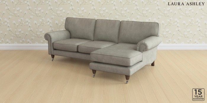 6.12.13 Buy Kingston by Laura Ashley Medium Sofa Chaise - Right Hand Bainton Pale Steel Grey Low Chrome Castor - Chestnut from the Laura Ashley online shop Click here to use our website with more accessibility support, for example screen readers