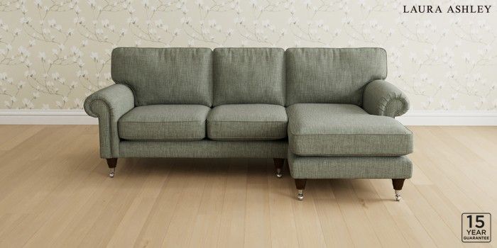 6.12.1 Buy Kingston by Laura Ashley Medium Sofa Chaise - Right Hand Bainton Sage Green Low Chrome Castor - Chestnut from the Laura Ashley online shop Click here to use our website with more accessibility support, for example screen readers