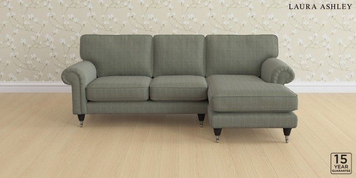 6.12.1 Buy Kingston by Laura Ashley Medium Sofa Chaise - Right Hand Birchgrove Check Olive Green Low Chrome Castor - Black from the Laura Ashley online shop Click here to use our website with more accessibility support, for example screen readers