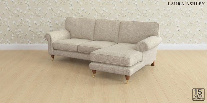 6.12.13 Buy Kingston by Laura Ashley Medium Sofa Chaise - Right Hand Borwick Natural Low Brass Castor - Teak from the Laura Ashley online shop Click here to use our website with more accessibility support, for example screen readers