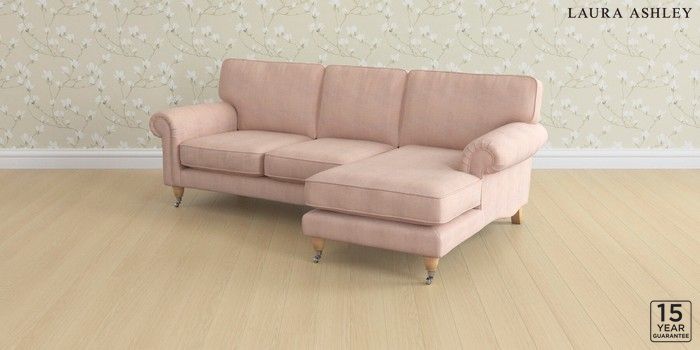 6.12.1 Buy Kingston by Laura Ashley Medium Sofa Chaise - Right Hand Edwin Chenille Blush Pink Low Chrome Castor - Light Oak from the Laura Ashley online shop Click here to use our website with more accessibility support, for example screen readers