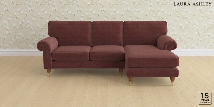 6.12.1 Buy Kingston by Laura Ashley Medium Sofa Chaise - Right Hand Edwin Chenille Burgundy Red Low Brass Castor - Teak from the Laura Ashley online shop Click here to use our website with more accessibility support, for example screen readers