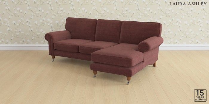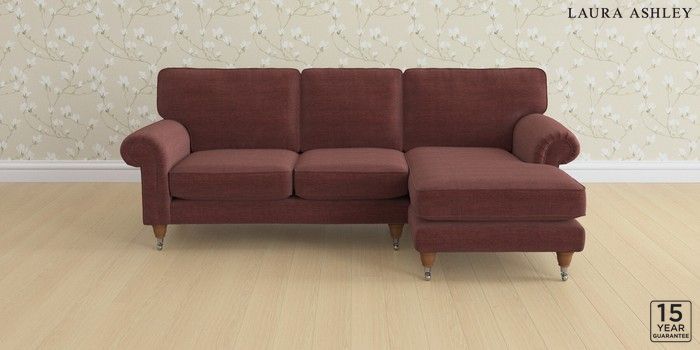 6.12.13 Buy Kingston by Laura Ashley Medium Sofa Chaise - Right Hand Edwin Chenille Burgundy Red Low Chrome Castor - Teak from the Laura Ashley online shop Click here to use our website with more accessibility support, for example screen readers