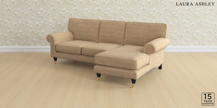 6.12.1 Buy Kingston by Laura Ashley Medium Sofa Chaise - Right Hand Edwin Chenille Gold Natural Low Brass Castor - Black from the Laura Ashley online shop Click here to use our website with more accessibility support, for example screen readers