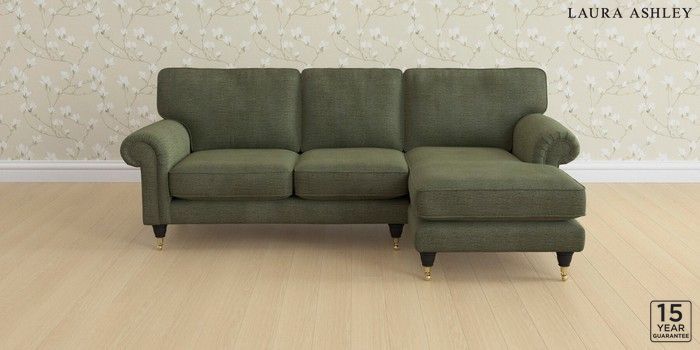 6.12.1 Buy Kingston by Laura Ashley Medium Sofa Chaise - Right Hand Edwin Chenille Hedgerow Green Low Brass Castor - Black from the Laura Ashley online shop Click here to use our website with more accessibility support, for example screen readers