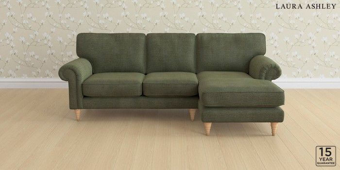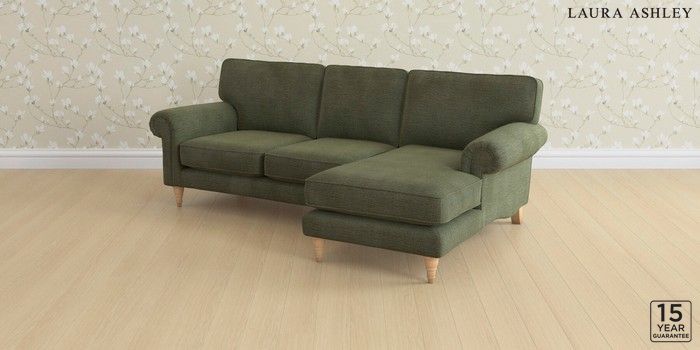 6.12.1 Buy Kingston by Laura Ashley Medium Sofa Chaise - Right Hand Edwin Chenille Hedgerow Green Low Turned - Light Oak from the Laura Ashley online shop Click here to use our website with more accessibility support, for example screen readers