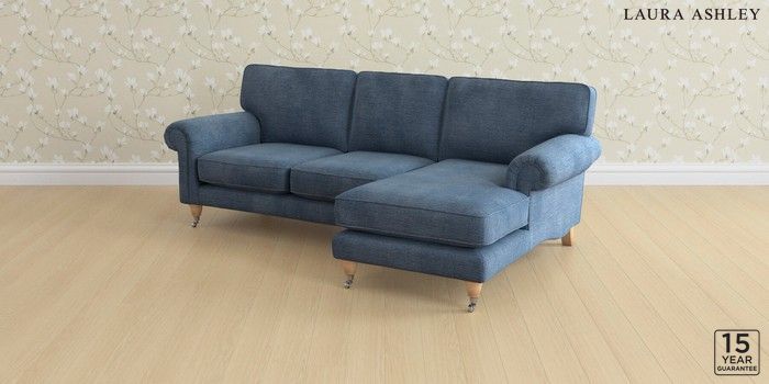 6.12.1 Buy Kingston by Laura Ashley Medium Sofa Chaise - Right Hand Edwin Chenille Seaspray Blue Low Chrome Castor - Light Oak from the Laura Ashley online shop Click here to use our website with more accessibility support, for example screen readers
