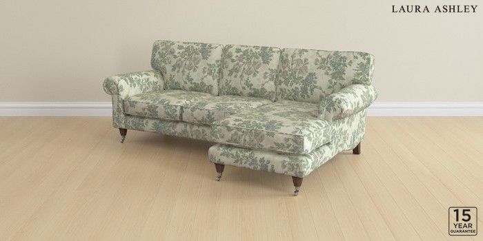 6.12.13 Buy Kingston by Laura Ashley Medium Sofa Chaise - Right Hand Ellerby Seaspray Blue Low Chrome Castor - Chestnut from the Laura Ashley online shop Click here to use our website with more accessibility support, for example screen readers