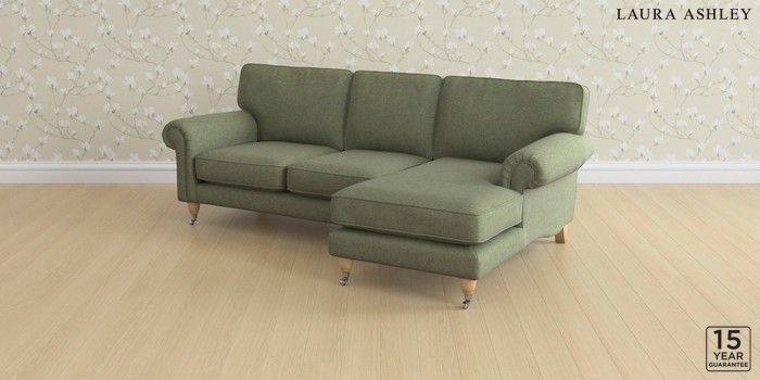 6.12.1 Buy Kingston by Laura Ashley Medium Sofa Chaise - Right Hand Harley Moss Green Low Chrome Castor - Light Oak from the Laura Ashley online shop Click here to use our website with more accessibility support, for example screen readers