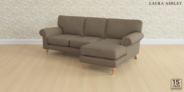 6.12.1 Buy Kingston by Laura Ashley Medium Sofa Chaise - Right Hand Harley Truffle Natural Low Brass Castor - Light Oak from the Laura Ashley online shop Click here to use our website with more accessibility support, for example screen readers