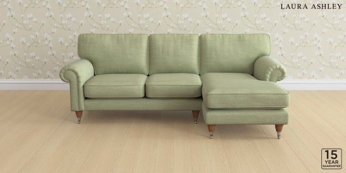 6.12.1 Buy Kingston by Laura Ashley Medium Sofa Chaise - Right Hand Kinsham Hedgerow Green Low Chrome Castor - Teak from the Laura Ashley online shop Click here to use our website with more accessibility support, for example screen readers