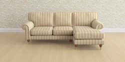 7.0.3 Buy Kingston by Laura Ashley Medium Sofa Chaise - Right Hand Kinsham Stripe Ochre Yellow Low Brass Castor - Teak from the Laura Ashley online shop Click here to use our website with more accessibility support, for example screen readers