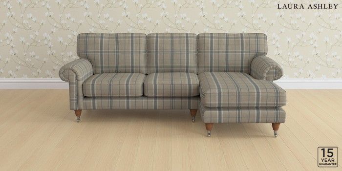 6.12.1 Buy Kingston by Laura Ashley Medium Sofa Chaise - Right Hand Longstowe Check French Grey Low Chrome Castor - Teak from the Laura Ashley online shop Click here to use our website with more accessibility support, for example screen readers