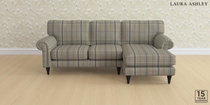 6.12.13 Buy Kingston by Laura Ashley Medium Sofa Chaise - Right Hand Longstowe Check French Grey Low Turned - Black from the Laura Ashley online shop Click here to use our website with more accessibility support, for example screen readers