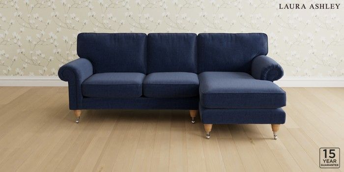 6.12.1 Buy Kingston by Laura Ashley Medium Sofa Chaise - Right Hand Nantmor Midnight Navy Low Brass Castor - Light Oak from the Laura Ashley online shop Click here to use our website with more accessibility support, for example screen readers