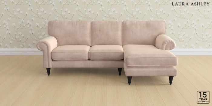 6.12.1 Buy Kingston by Laura Ashley Medium Sofa Chaise - Right Hand Orla Chalk Pink Low Turned - Black from the Laura Ashley online shop Click here to use our website with more accessibility support, for example screen readers