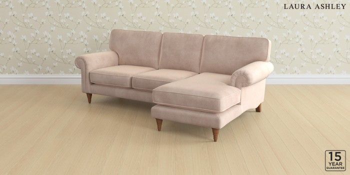 6.12.13 Buy Kingston by Laura Ashley Medium Sofa Chaise - Right Hand Orla Chalk Pink Low Turned - Teak from the Laura Ashley online shop Click here to use our website with more accessibility support, for example screen readers