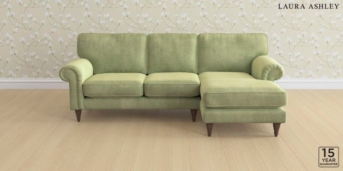 6.12.1 Buy Kingston by Laura Ashley Medium Sofa Chaise - Right Hand Orla Pale Hedgerow Green Low Turned - Chestnut from the Laura Ashley online shop Click here to use our website with more accessibility support, for example screen readers