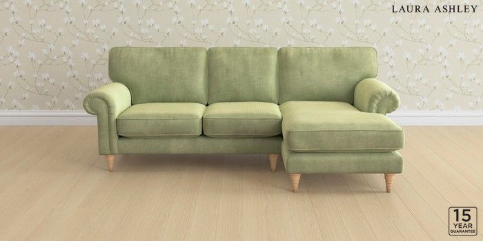 6.12.1 Buy Kingston by Laura Ashley Medium Sofa Chaise - Right Hand Orla Pale Hedgerow Green Low Turned - Light Oak from the Laura Ashley online shop Click here to use our website with more accessibility support, for example screen readers