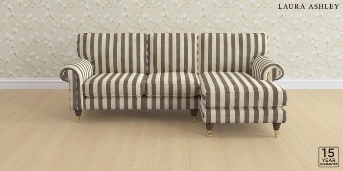6.12.1 Buy Kingston by Laura Ashley Medium Sofa Chaise - Right Hand Orla Stripe Dark Truffle Natural Low Brass Castor - Chestnut from the Laura Ashley online shop Click here to use our website with more accessibility support, for example screen readers