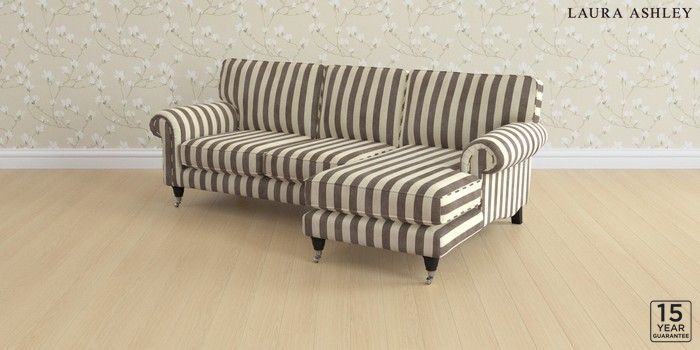 6.12.1 Buy Kingston by Laura Ashley Medium Sofa Chaise - Right Hand Orla Stripe Dark Truffle Natural Low Chrome Castor - Black from the Laura Ashley online shop Click here to use our website with more accessibility support, for example screen readers