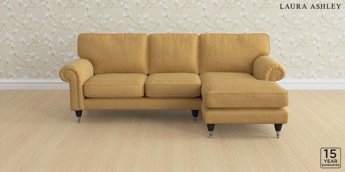 6.12.1 Buy Kingston by Laura Ashley Medium Sofa Chaise - Right Hand Peyton Ochre Yellow Low Chrome Castor - Black from the Laura Ashley online shop Click here to use our website with more accessibility support, for example screen readers